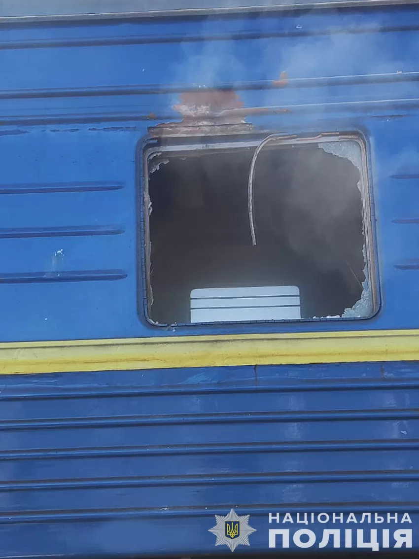 “У результаті пошкоджено вагон, сталось загоряння всередині вагона, вибиті вікна. Пошкоджений вагон залишився на ходу та поїхав з місця в складі поїзда. Обійшлось без жертв та постраждалих, працівники та пасажири перебували в укриттях”, – розповіли в Укрзалізниці.