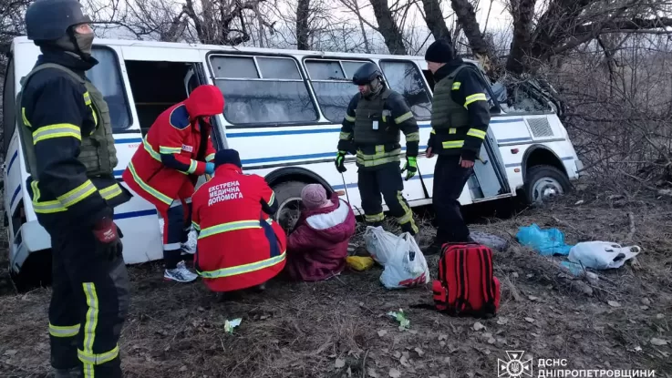 Вранці 6 лютого на Дніпропетровщині сталася дорожньо-транспортна пригода за участю автобуса, що перевозив працівників підприємства. Внаслідок аварії постраждали 14 осіб.