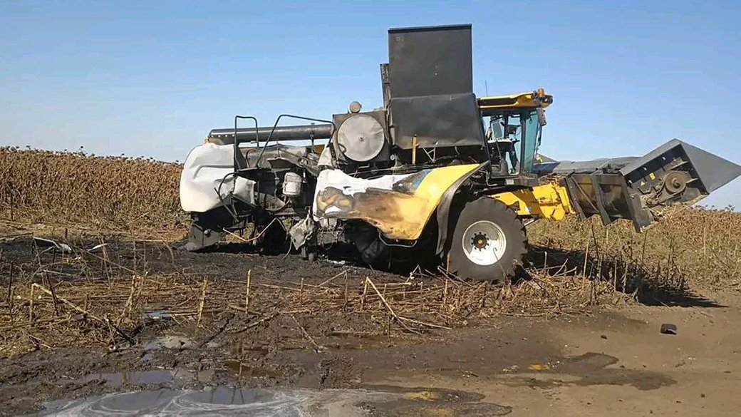 25 вересня близько 11:50 під час роботи у полі комбайн наїхав на невідомий вибуховий пристрій, ймовірно, протитанкову міну, поблизу Андріївки Ізюмського району.