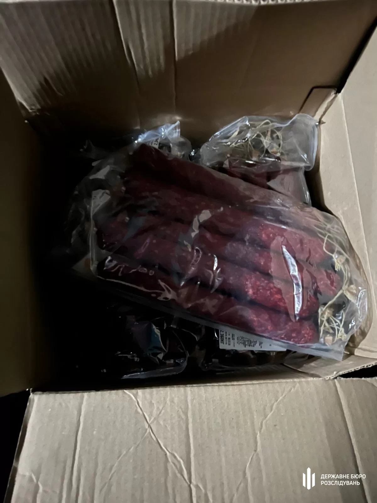 Під час обшуків правоохоронці вилучили понад 600 кг м’яса, 80 кг риби, 60 кг ковбаси, 110 кг сиру, 12 кг масла та інші продукти на суму близько 160 тисяч гривень. Начальницю їдальні, інструктора та водія затримано.
