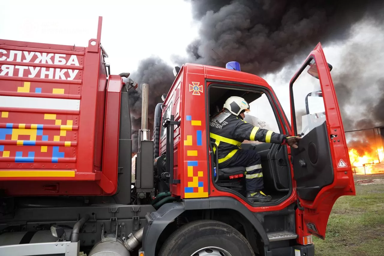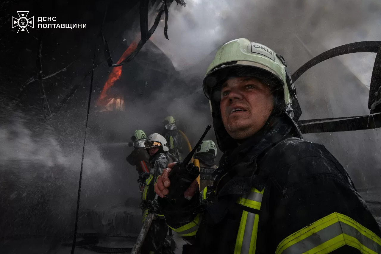 Ліквідація пожежі після удару по Полтавщині / Фото: ДСНС