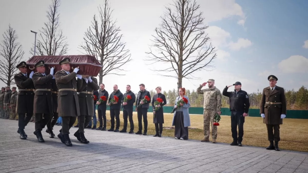 Як повідомили повідомили в Офісі президента, на території Національного військового меморіального кладовища 28 березня відбулася церемонія почесного поховання невпізнаних тіл військовослужбовців та поліцейських, які загинули внаслідок збройної агресії проти України.