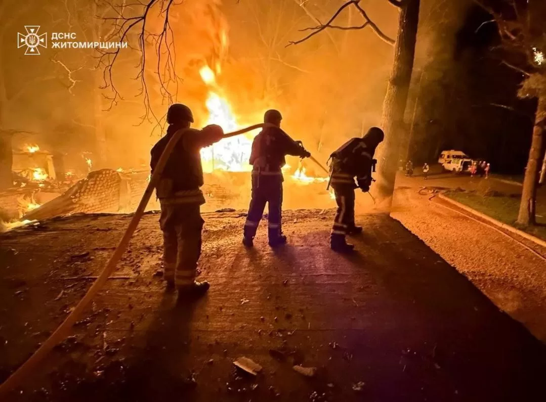 Сьогодні, 24 квітня, росіяни кілька разів атакували Житомирщину та завдали повторного удару по рятувальниках, які працювали на місці пожежі після обстрілу.