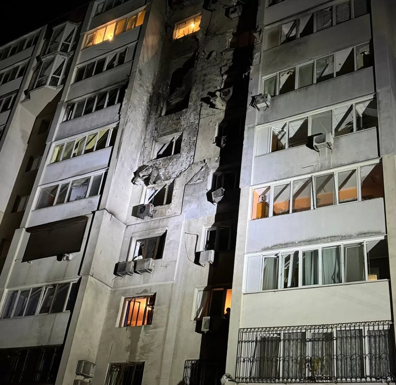 У місті зафіксовано значні пошкодження житлового фонду. У багатоповерхівках зруйновані балкони, вибито вікна, сталися пожежі на верхніх поверхах. У приватному секторі також горіли житлові будинки, займання ліквідовано. Пошкоджено понад 10 автомобілів.
