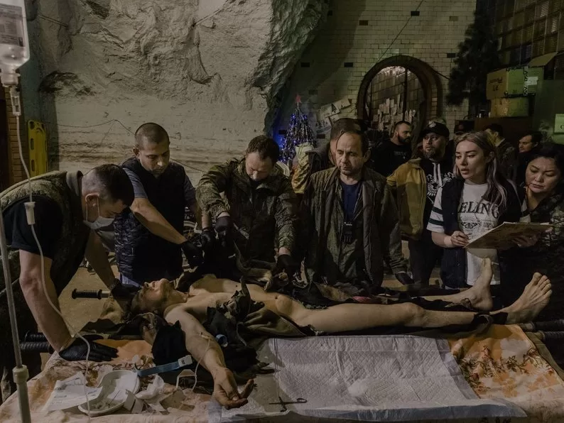 Світлина, яка отримала назву “Підземний польовий шпиталь”, виграла в категорії окремих фотографій для європейського регіону. На зображенні — поранений бойовик, якому в польовому шпиталі поблизу тимчасово окупованого Бахмута готуються ампутувати ліву руку.