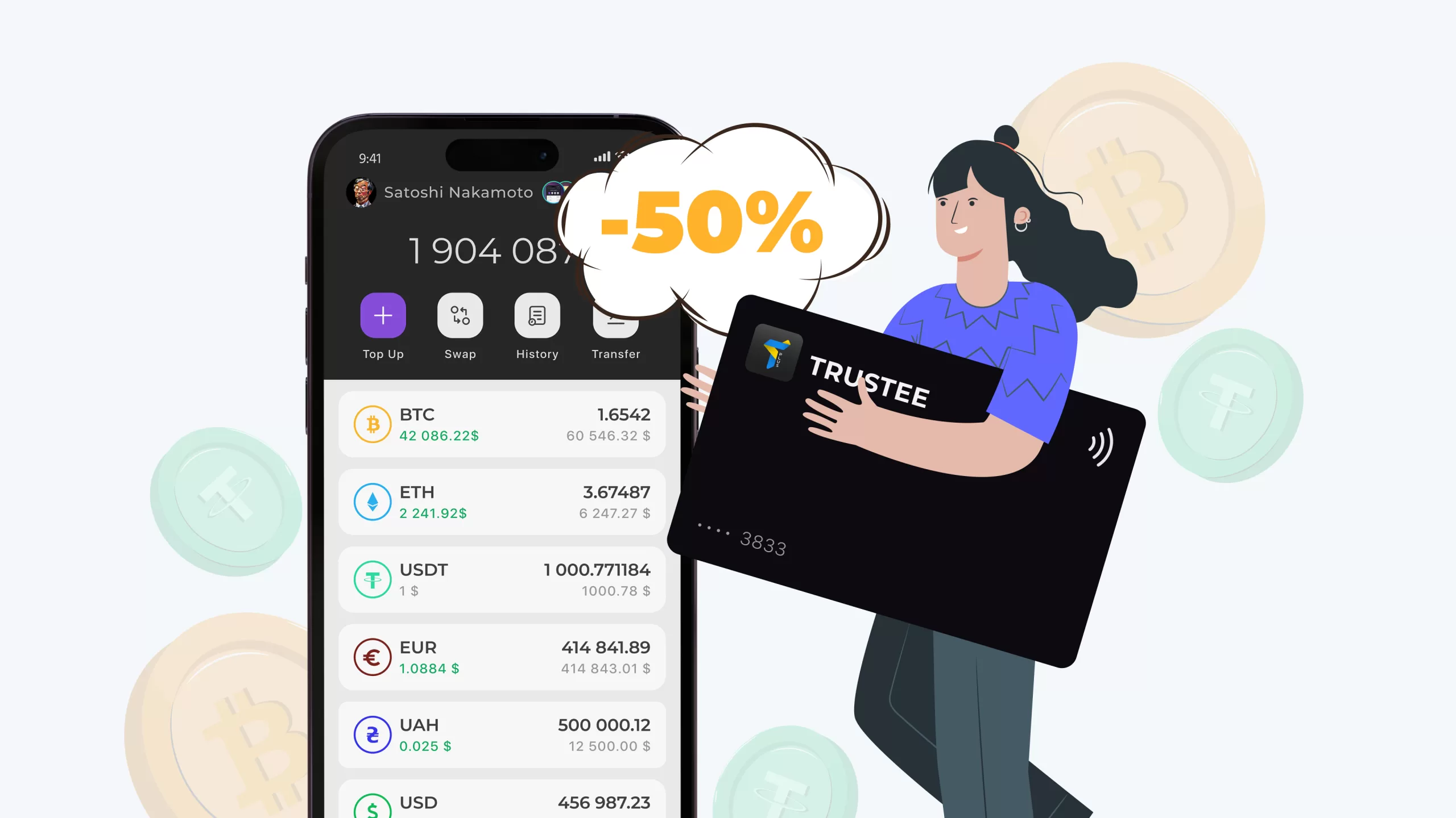 На честь знаменної події компанія проводить безпрецедентну акцію і дає можливість оформити платіжну карту Trustee Plus зі знижкою 50%. Кращого варіанту для входу у сферу цифрових активів складно придумати й ми радимо не втрачати цей шанс!