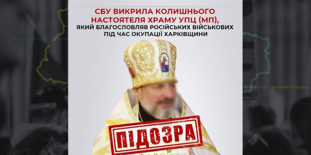 Священнику УПЦ МП заочно повідомили про підозру у виправданні агресії РФ. За версією слідства, 63-річний настоятель освячував водою росіян та їхню техніку під час окупації Ізюмського району.