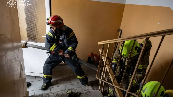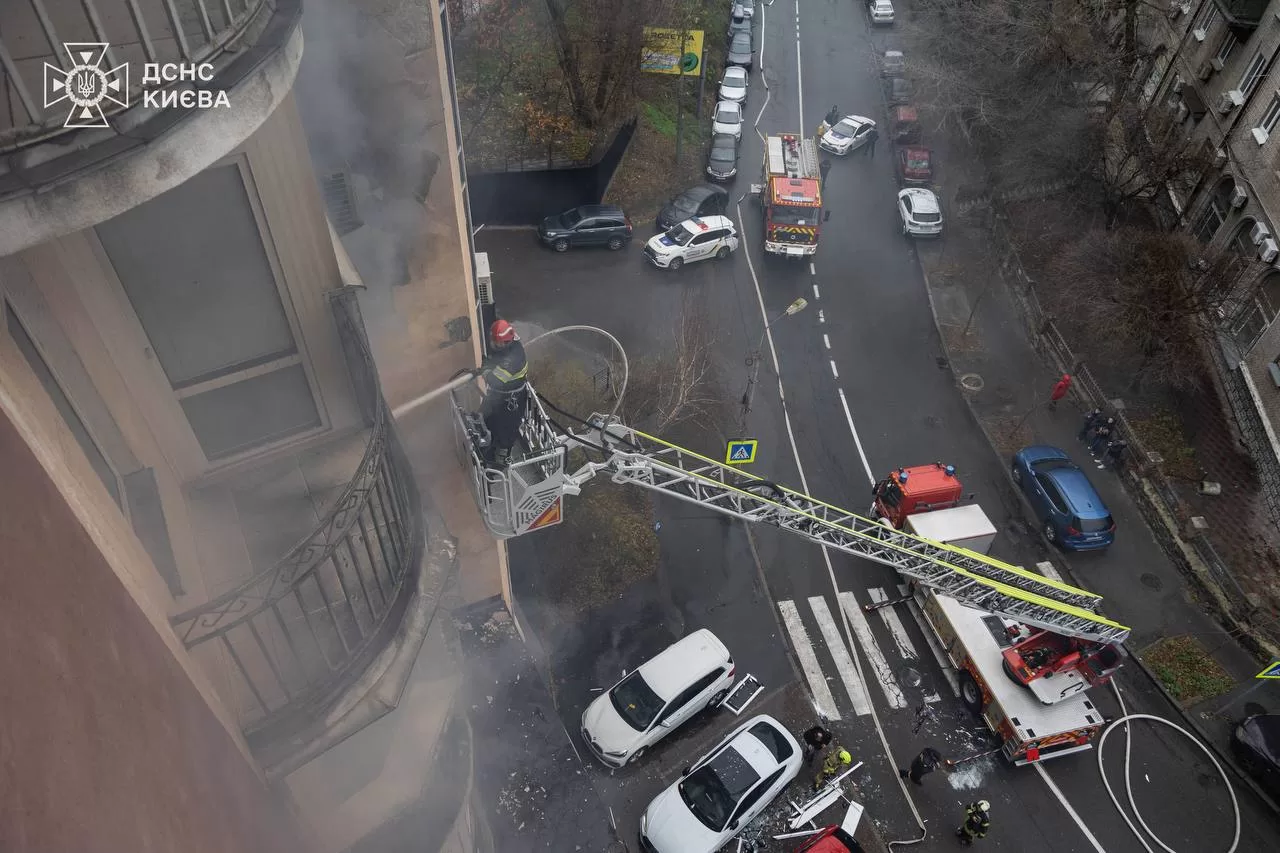 У Києві рятувальники ліквідували пожежу в багатоповерховому будинку на Кудрявському узвозі. Під час гасіння з сусідньої квартири вдалося врятувати двох людей, зокрема дитину.