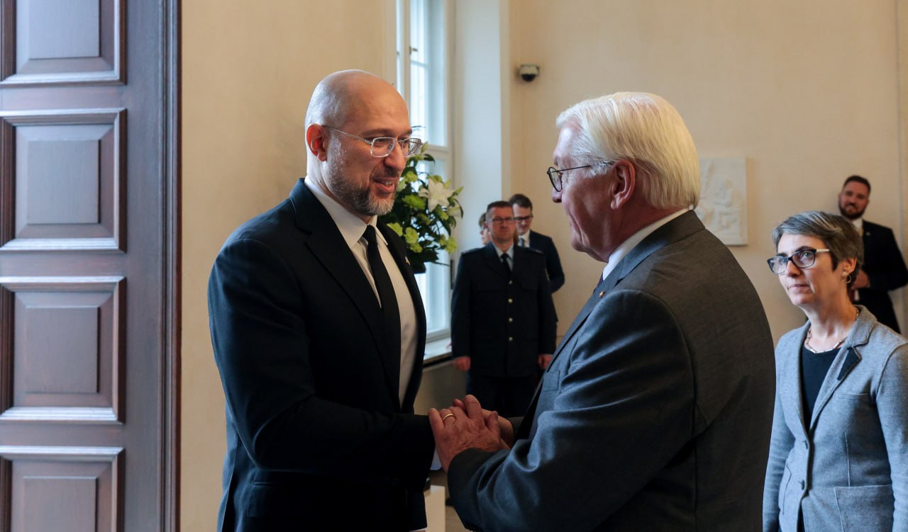 Прем’єр України Денис Шмигаль зустрівся з президентом Німеччини Франком-Вальтером Штайнмаєром. Обговорювали спільний розвиток оборонної індустрії і Формулу миру Зеленського.
