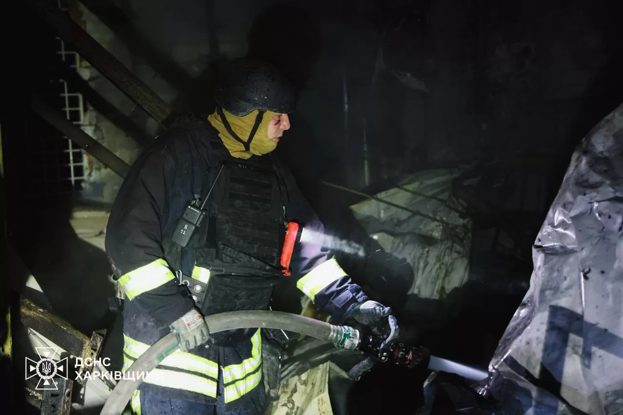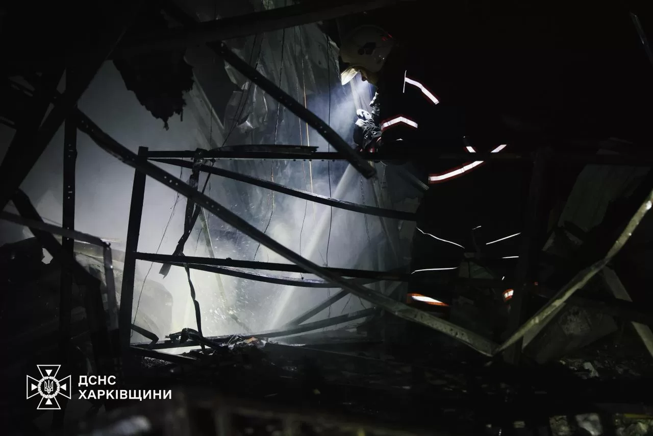 Пожежа на місці влучання БпЛА в Чугуєві / Фото: ДСНС Харківщини