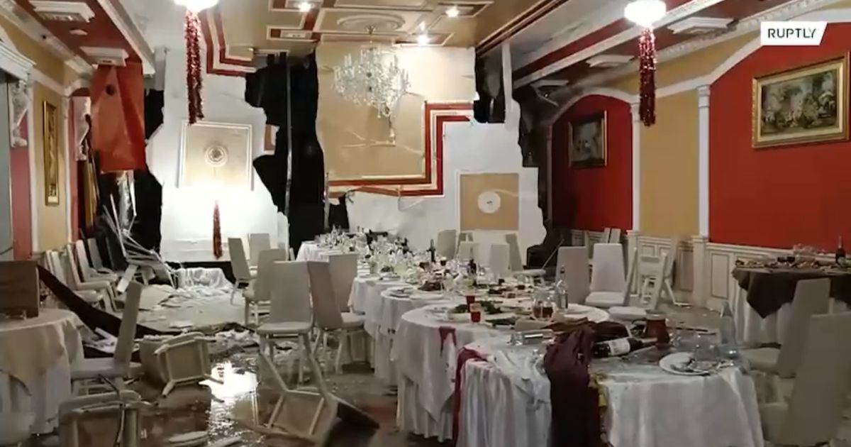 Російські канали публікують фото та відео з місця подій, на яких видно зал ресторану з вибитими вікнами, руйнування у дворі та частково зруйновані снарядом другий поверх будівлі. Звіряння цих кадрів із рекламними фотографіями ресторану “Шеш-Беш” показує, що це справді він.