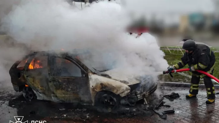 Через скид вибухонебезпечного предмету загорівся газовий модуль та легкова автівка на території АЗС.