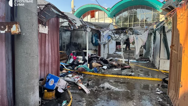 На місці удару сталася пожежа, під вогнем опинився Центральний ринок.