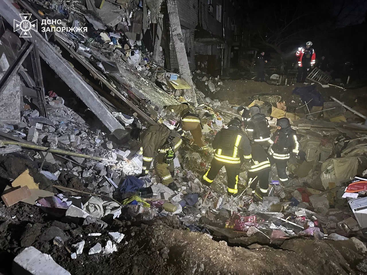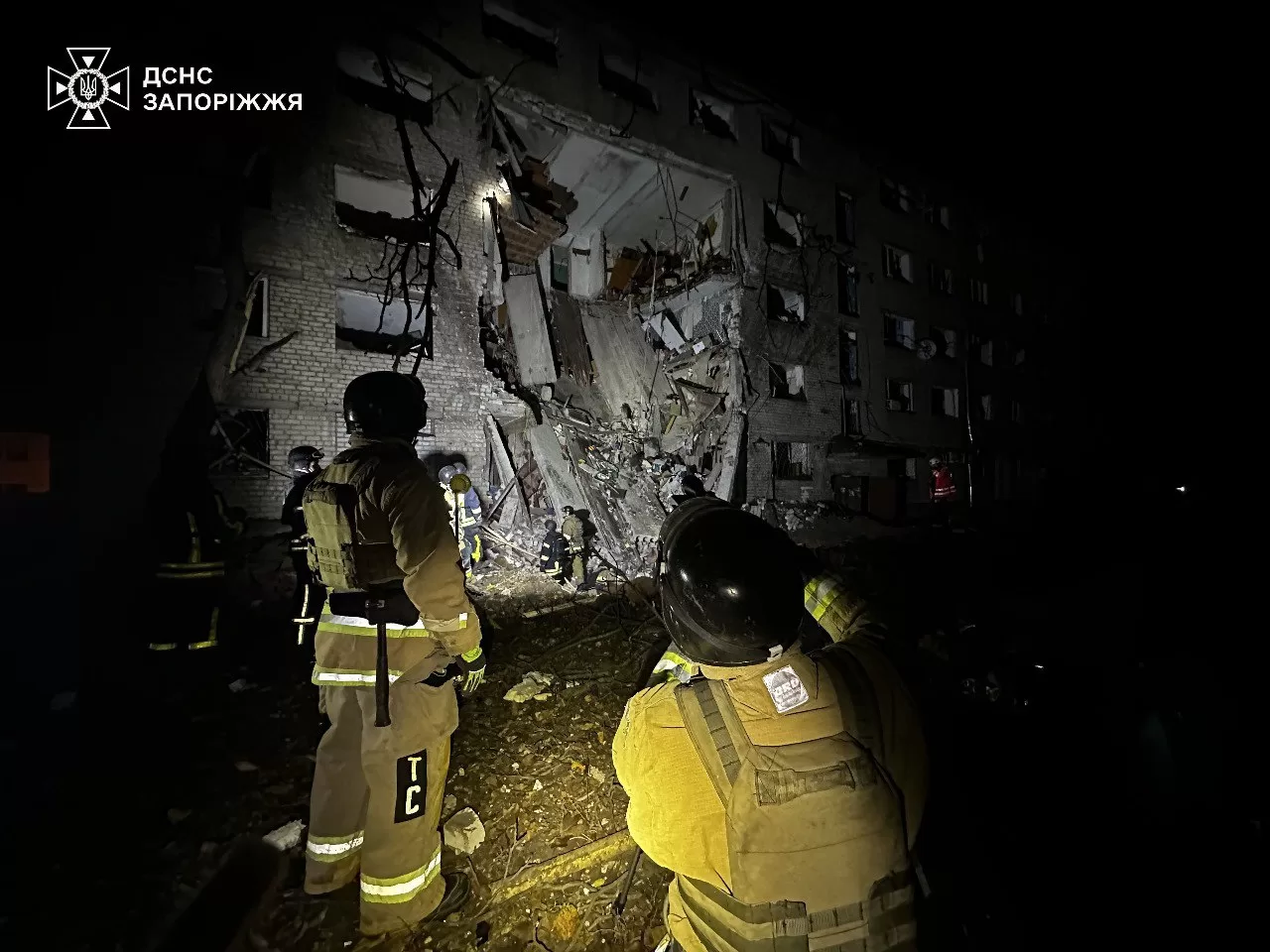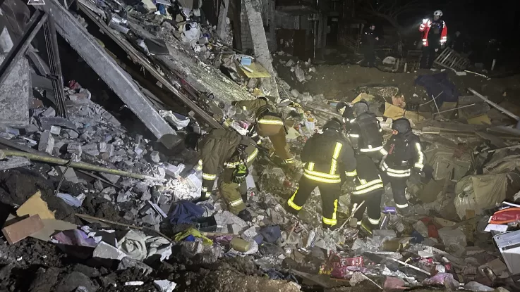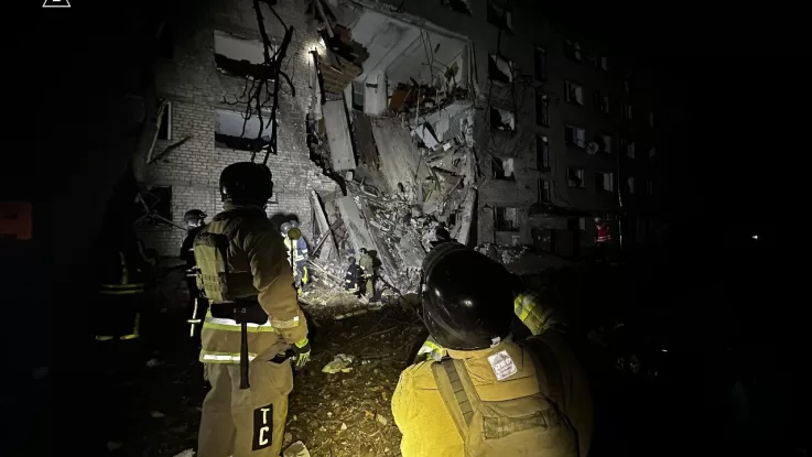 За однією з адрес сталося руйнування житлового будинку з 1 по 4 поверх, після чого обвалився п’ятий. Рятувальники проводять пошуково-рятувальні роботи, залучено кінологічний розрахунок.