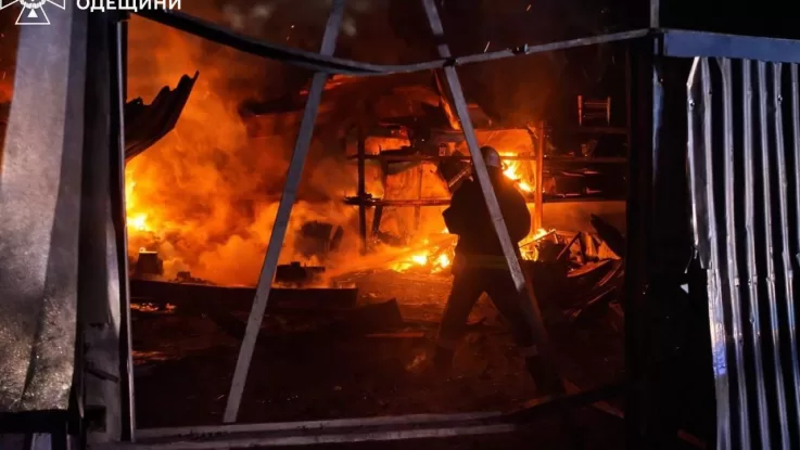 Російські війська атакували портову інфраструктуру Одещини ударними безпілотниками. Внаслідок влучань виникли пожежі та пошкоджено будівлі.