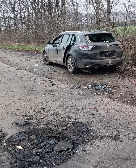 Renault Megane після удару БпЛА на Харківщині / Фото: Віктор Коваленко