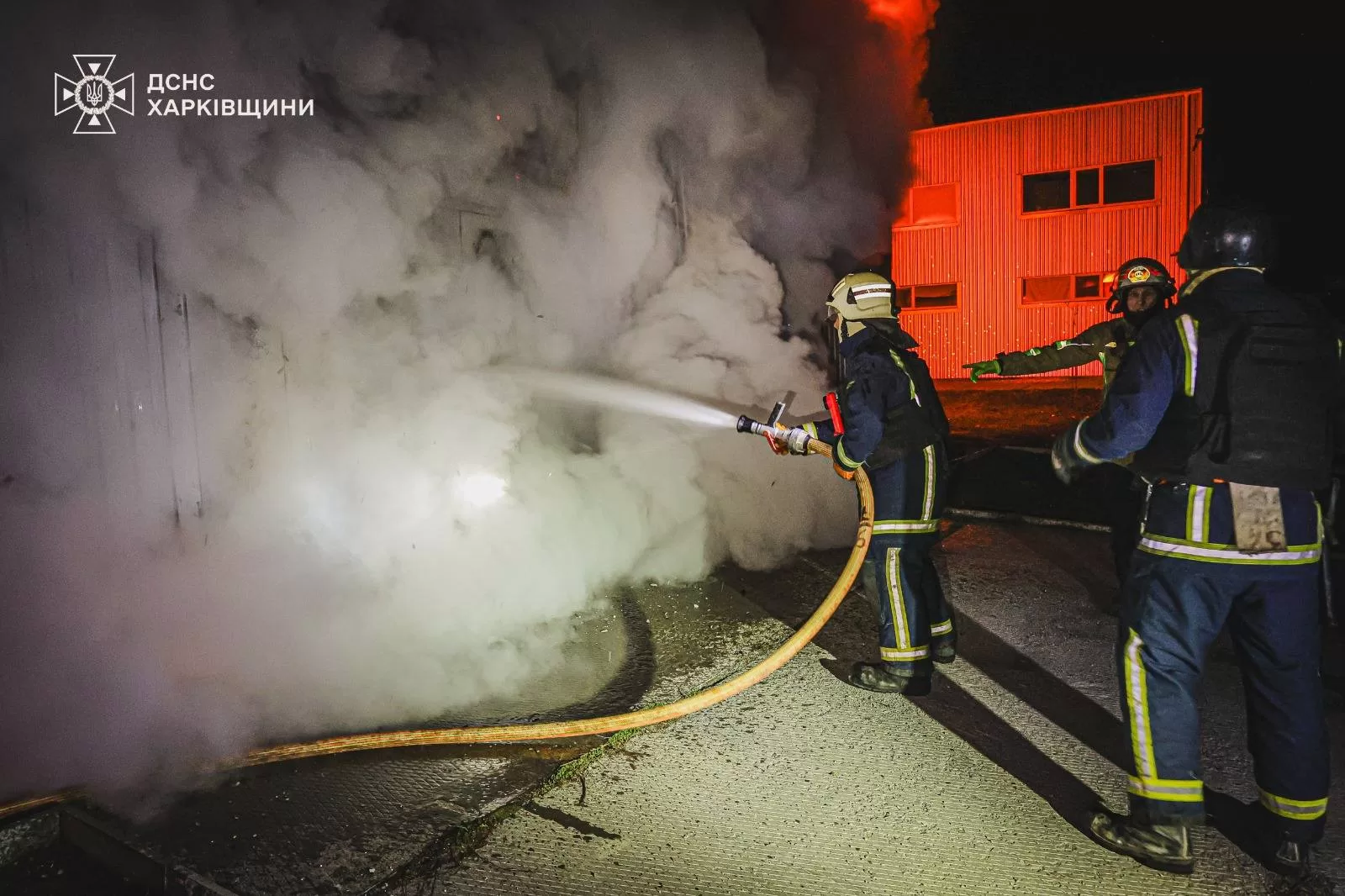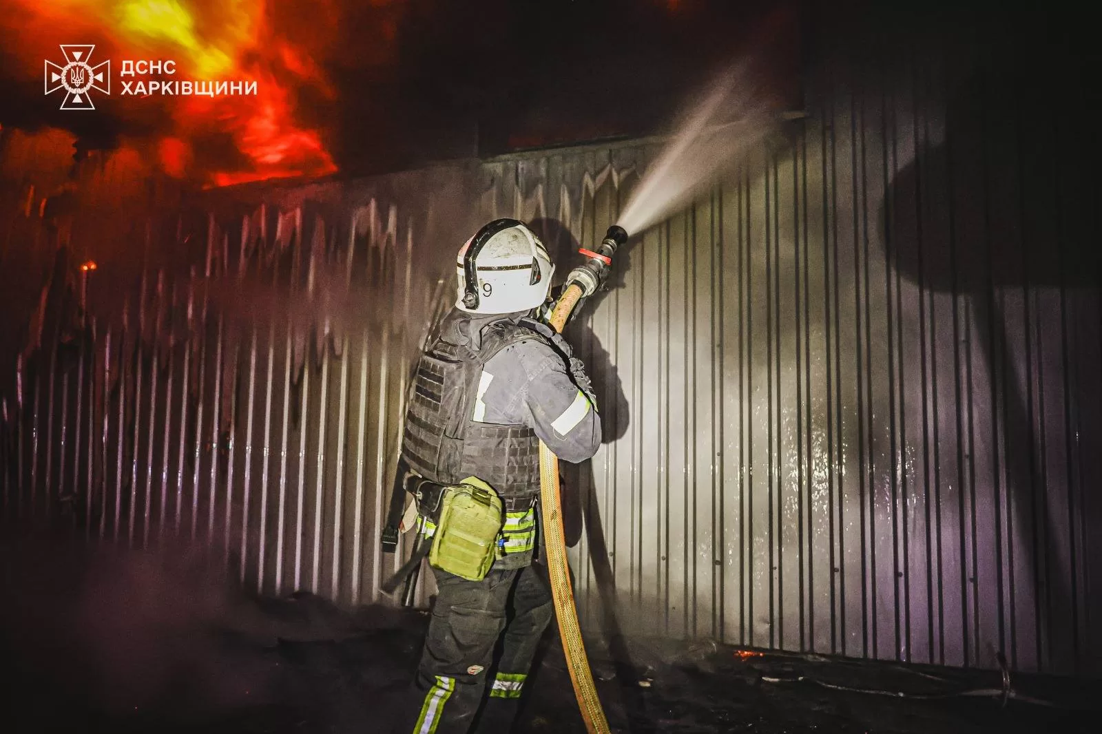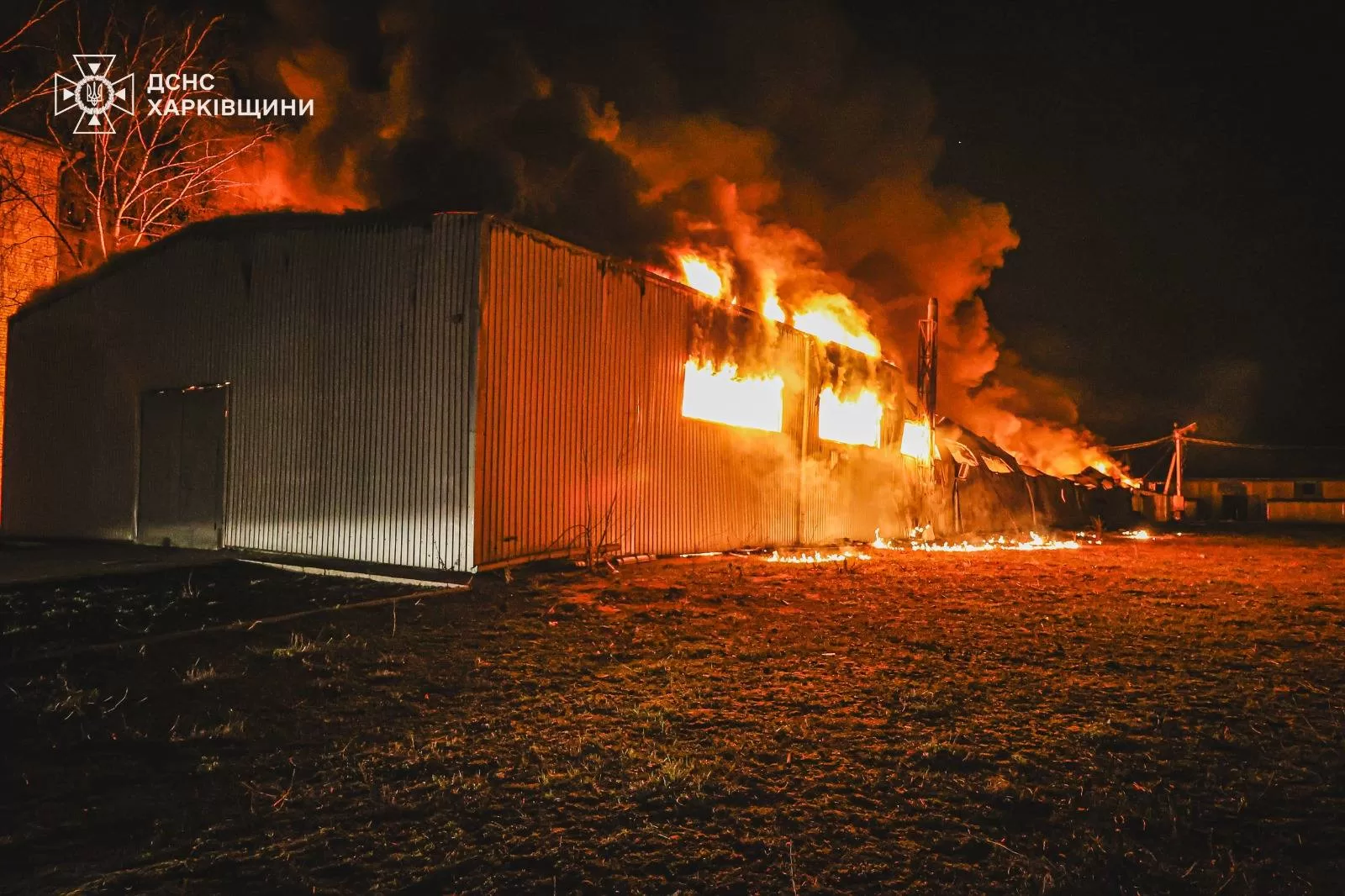Сталося чотири осередки займання, руйнації та пошкодження будівель. Найбільша пожежа площею 2500 кв. м вирувала у виробничій будівлі.