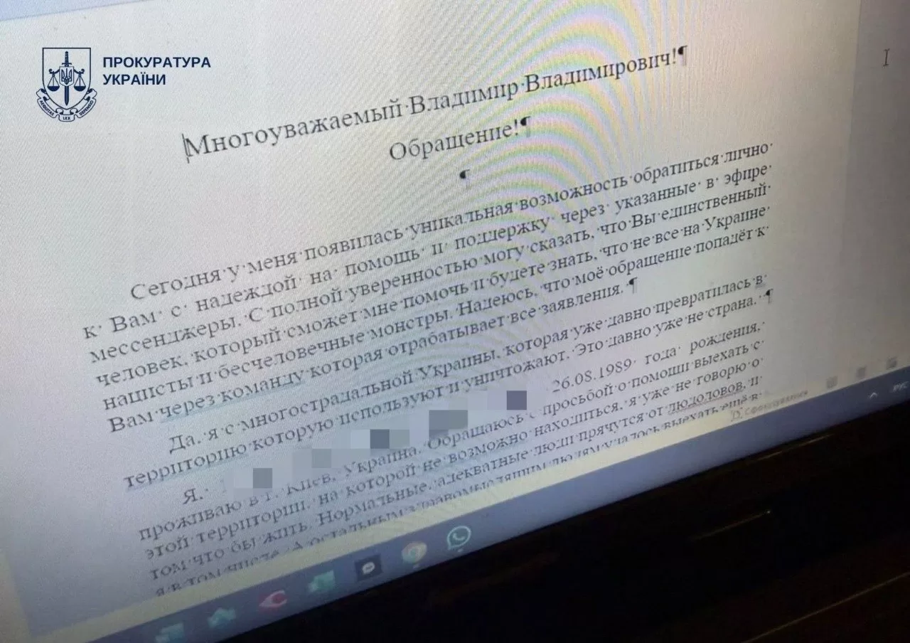 Під час обшуків у неї вилучили чотири смартфони, два ноутбуки, жорсткий диск та інші матеріали. Також виявлено листи до президента РФ і невідомих адресатів, написані від імені її сина, з проханням допомогти виїхати до Росії.