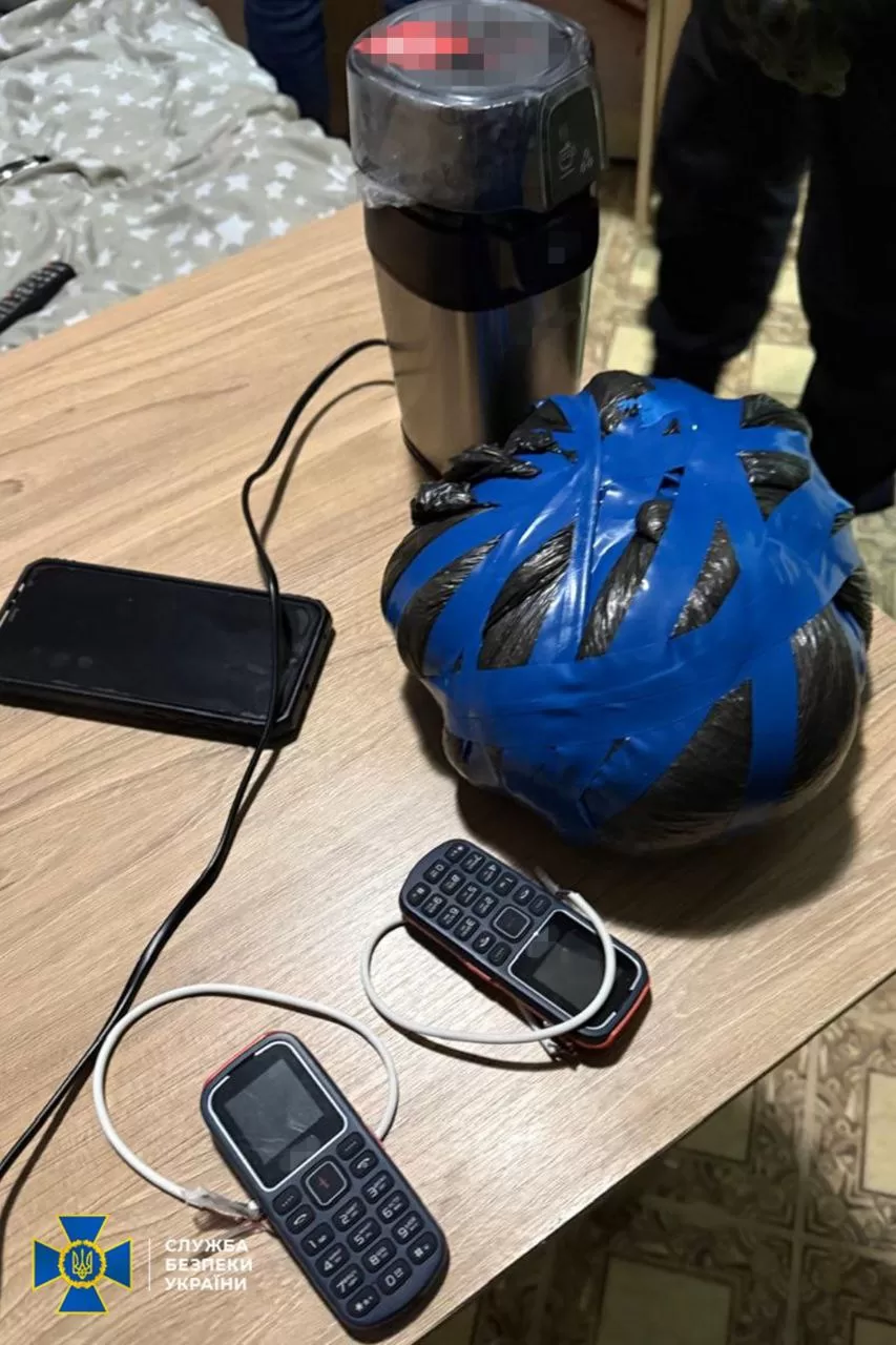 Під час обшуків у тимчасовому помешканні затриманого вилучили комплектуючі до вибухового пристрою і смартфон із доказами роботи на ФСБ.