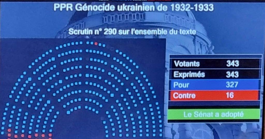 Сенат Франції 327-ма голосами “за” та 16 – “проти” визнав Голодомор геноцидом українського народу.