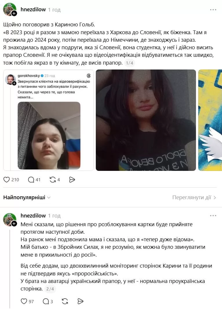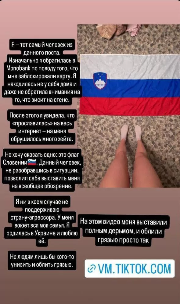 Нагадаємо, скандал стався після того, як співзасновник monobank Олег Гороховський опублікував у мережі фото користувачки банку та звинуватив її у проросійських поглядах. Причиною став прапор, який висів за її спиною і який, на думку Гороховського та працівників банку, є прапором Росії. Сама ж дівчина заявила, що це був прапор Словенії.