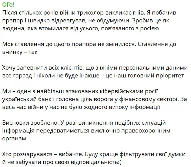 “Хто розчарувався — вибачте. Буду краще фільтрувати свої думки й не забувати про свою відповідальність”, — додав співзасновник monobank.