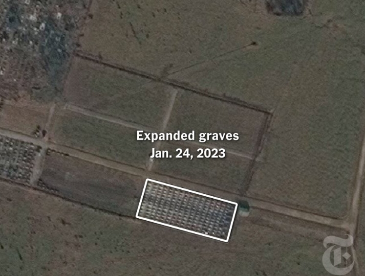 “На кладовищі “вагнерівців” у Бакинській вирито сотні нових могильних ям – свідчать супутникові знімки Maxar. Розширення чітко видно порівняно із зображенням двомісячної давності”, – написав журналіст The New York Times Крістіан Тріберт у Twitter.