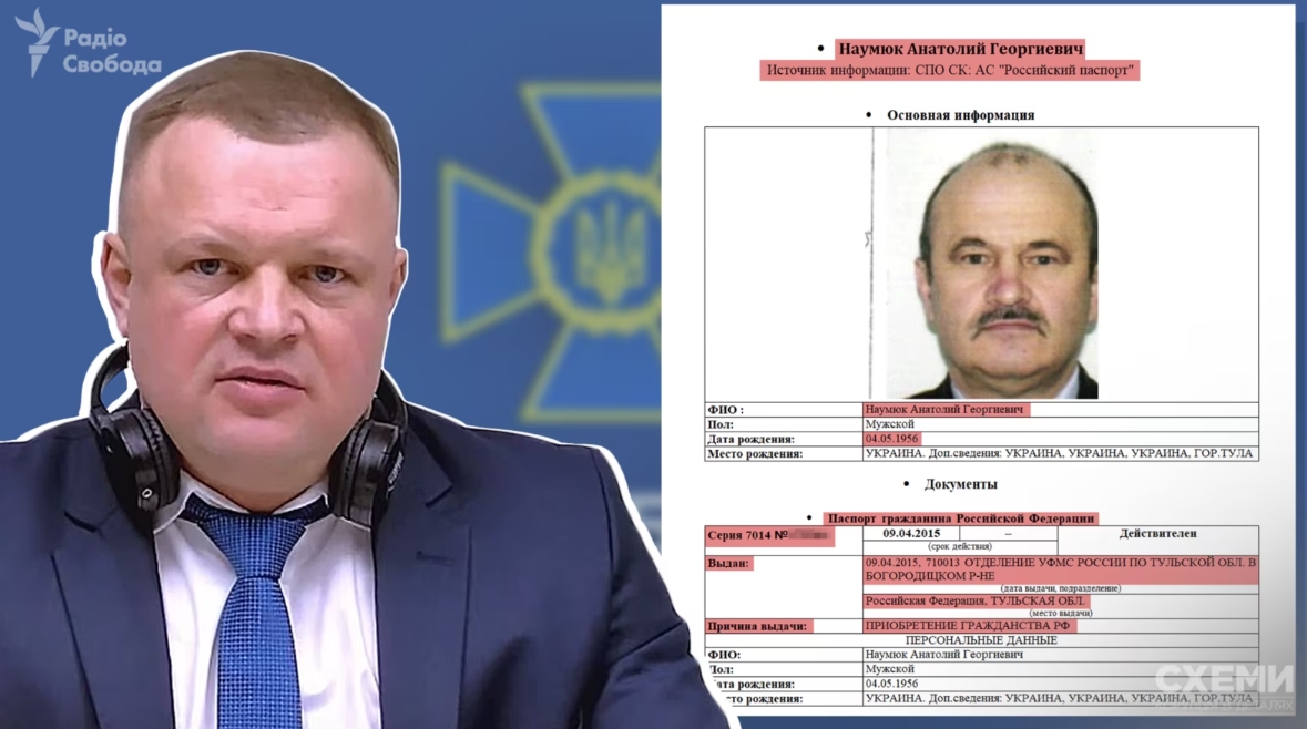 “Відповідно до витягу з реєстру “Роспаспорт”, який “Схеми” отримали у своє розпорядження, паспорт громадянина РФ Анатолія Наумюка був оформлений у 2015 році у місті Тула. Відповідно до документа, він подав заяву на отримання громадянства, вказавши підставою видачі паспорта – “набуття громадянства Російської Федерації”, – йдеться у повідомлені.