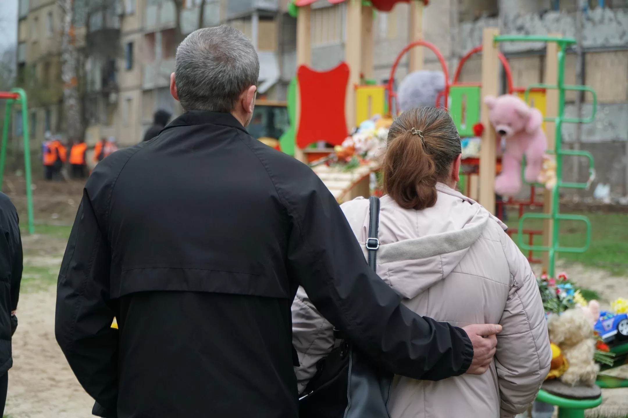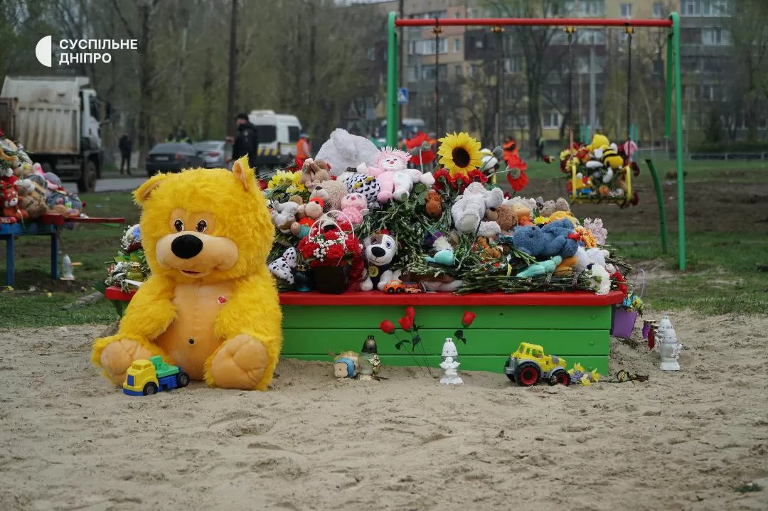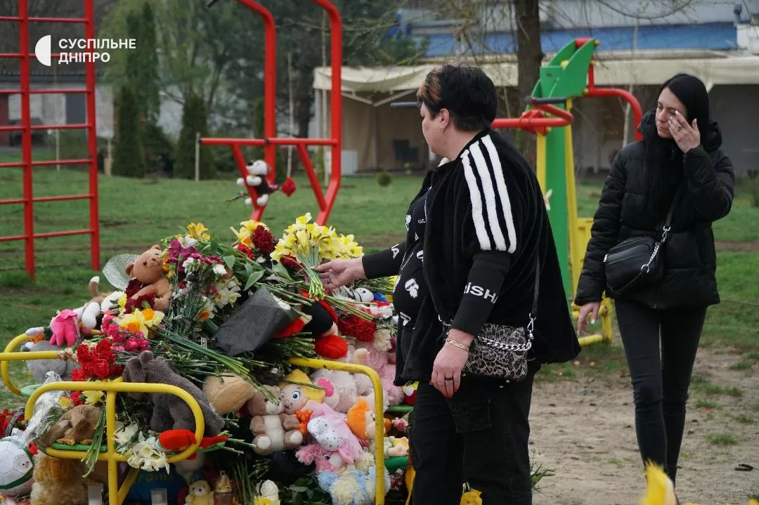 Жителі Кривого Рогу продовжують нести квіти та іграшки до місця атаки, на дитячий майданчик, передає Суспільне Дніпро.