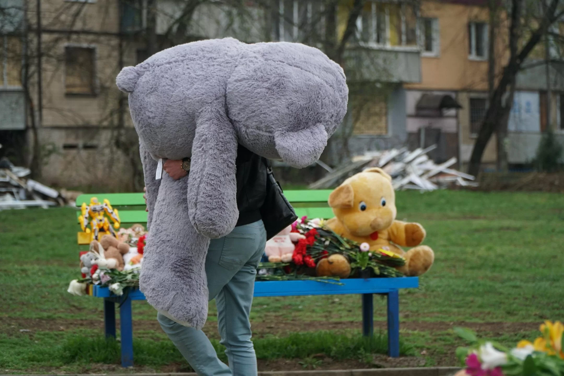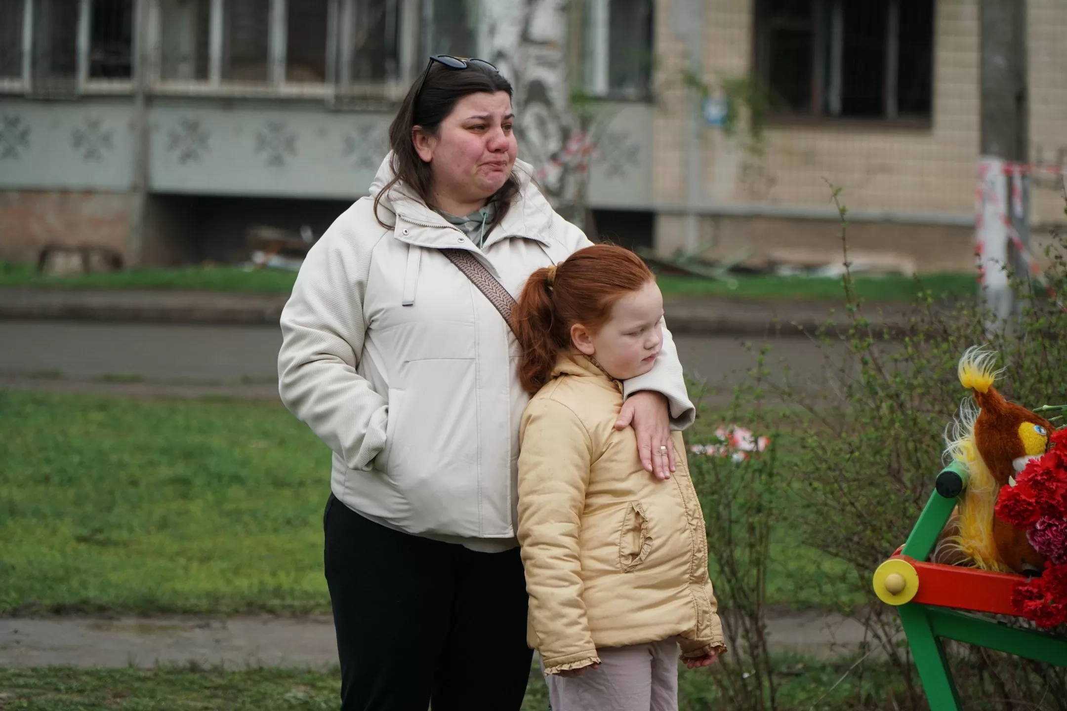На місце атаки приходять місцеві жителі, аби вшанувати памʼять загиблих дітей та дорослих.