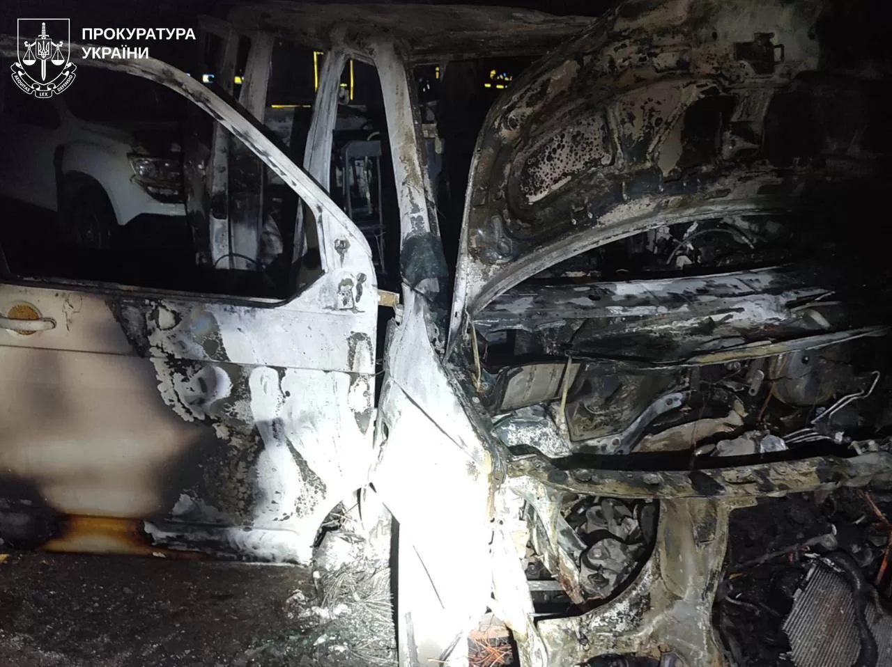 Унаслідок пожеж два авто згоріло повністю, ще два, які стояли поряд із ними, — частково пошкоджені.