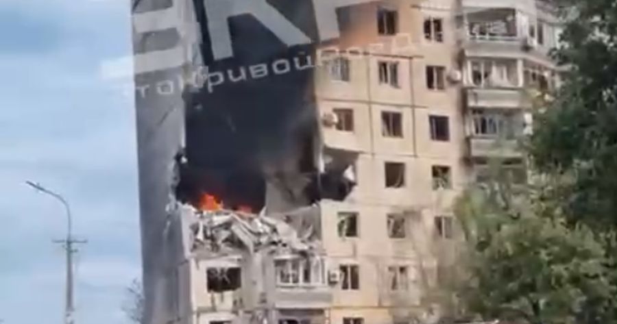 На відео, що публікують місцеві телеграм-канали, видно влучення у житлову багатоповерхівку.