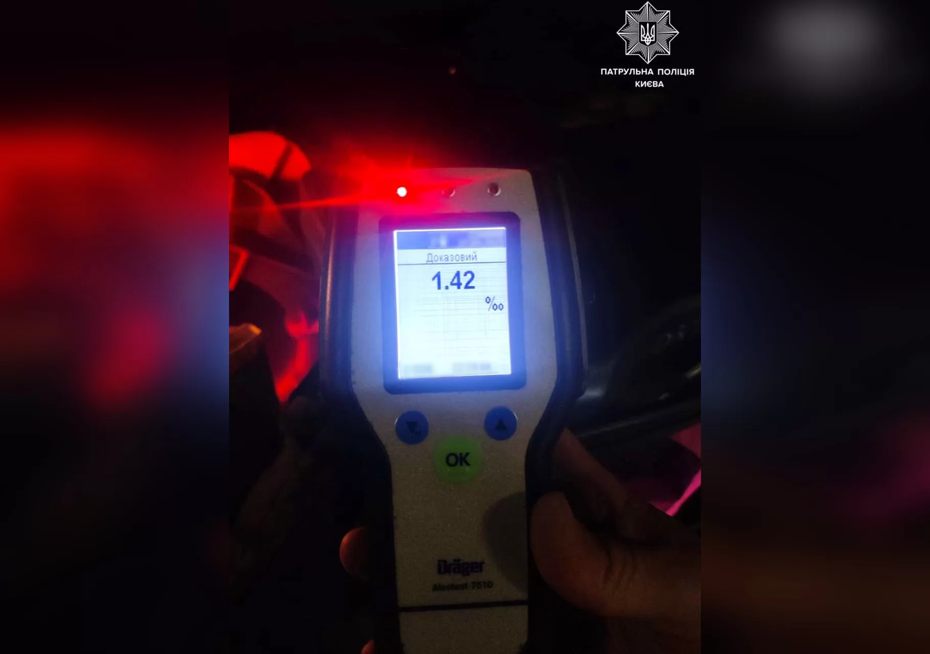 Під час спілкування з ймовірним винуватцем ДТП патрульні виявили в нього ознаки алкогольного сп’яніння. Чоловік погодився пройти огляд на стан сп’яніння за допомогою алкотесту Драгер. Результат – 1,42 проміле.
