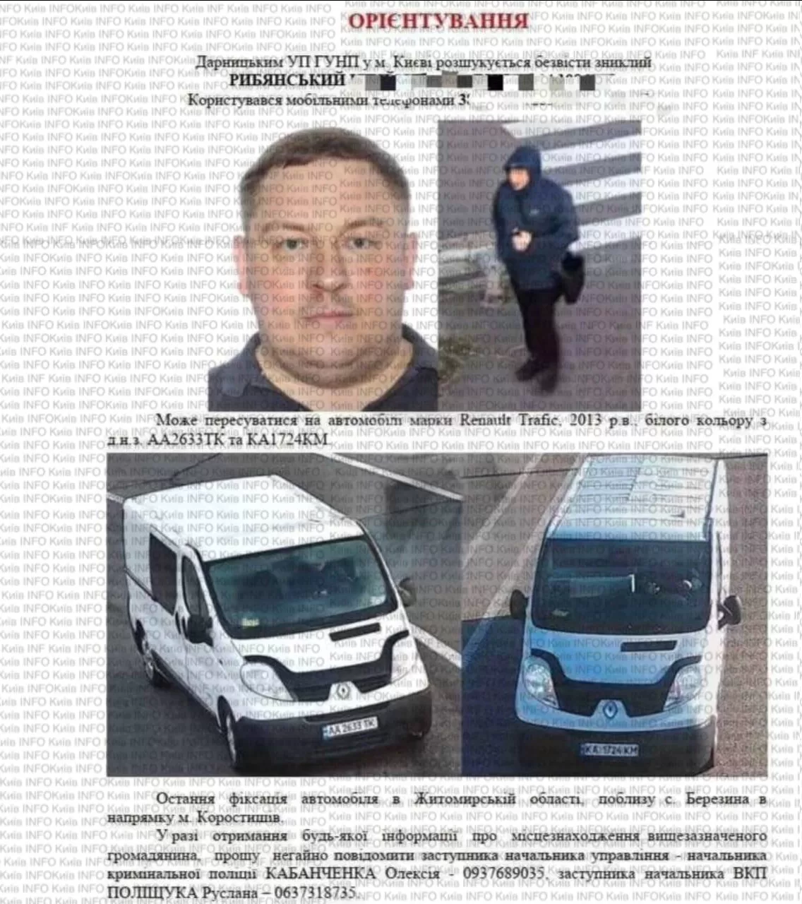 У Києві розшукують начальника відділення Дарницького управління поліції ГУНП Юрія Рибянського, який не вийшов на службу та не виходить на зв’язок. Разом із поліцейським зникли арештовані кошти.