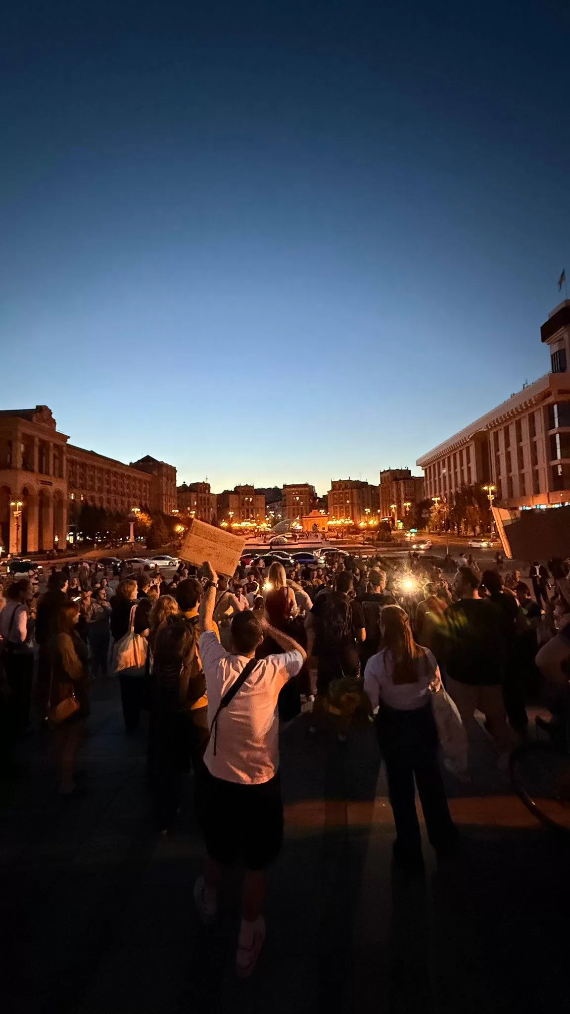 На Майдані Незалежності у Києві люди вийшли на акцію протесту проти законопроєкту № 13452, яким передбачено посилення покарання для військовослужбовців за непокору командуванню та СЗЧ.