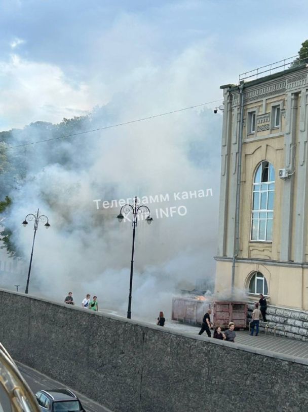 Площу затягнуло білим димом, який піднявся у небо. За пожежею очевидці спостерігали з Труханового острову.