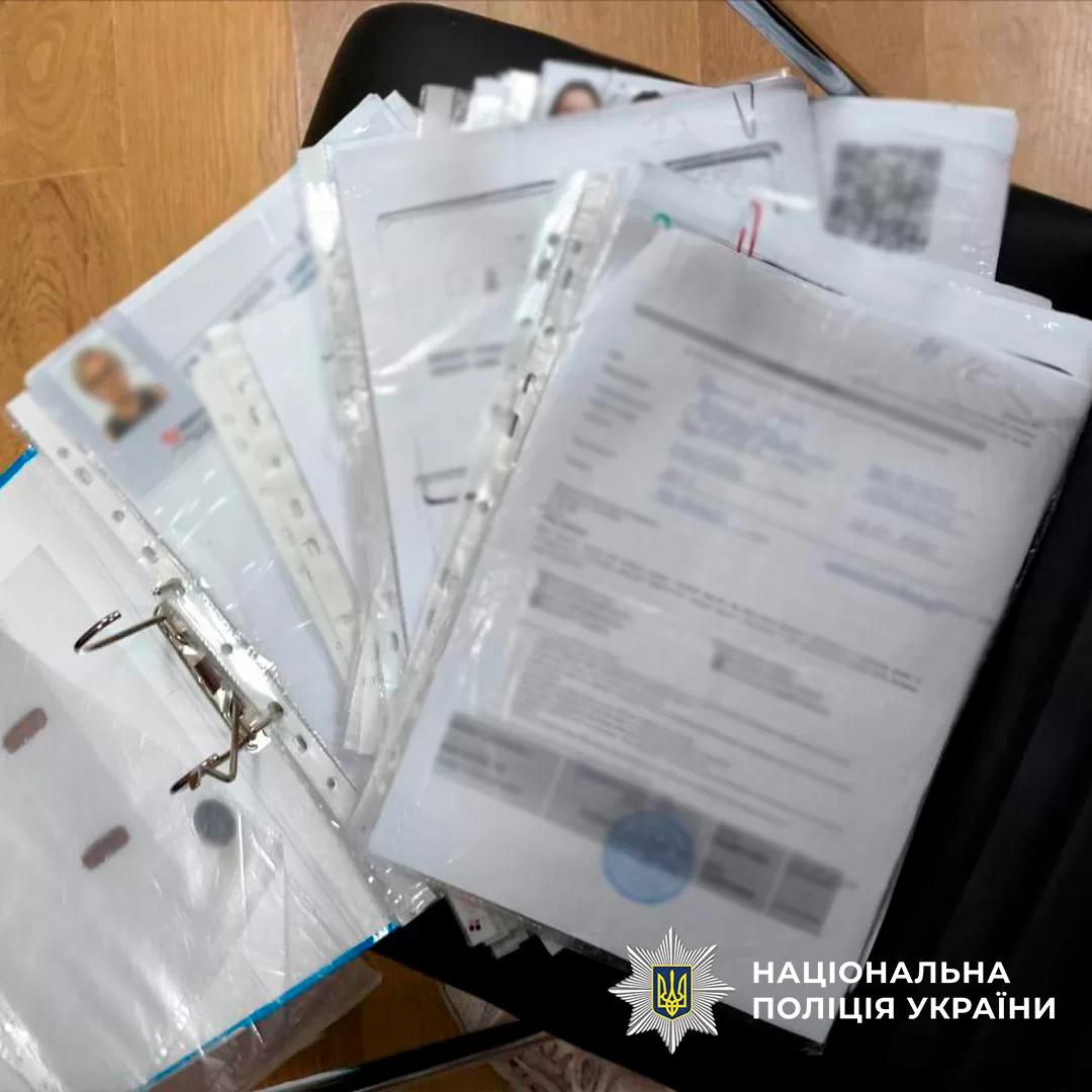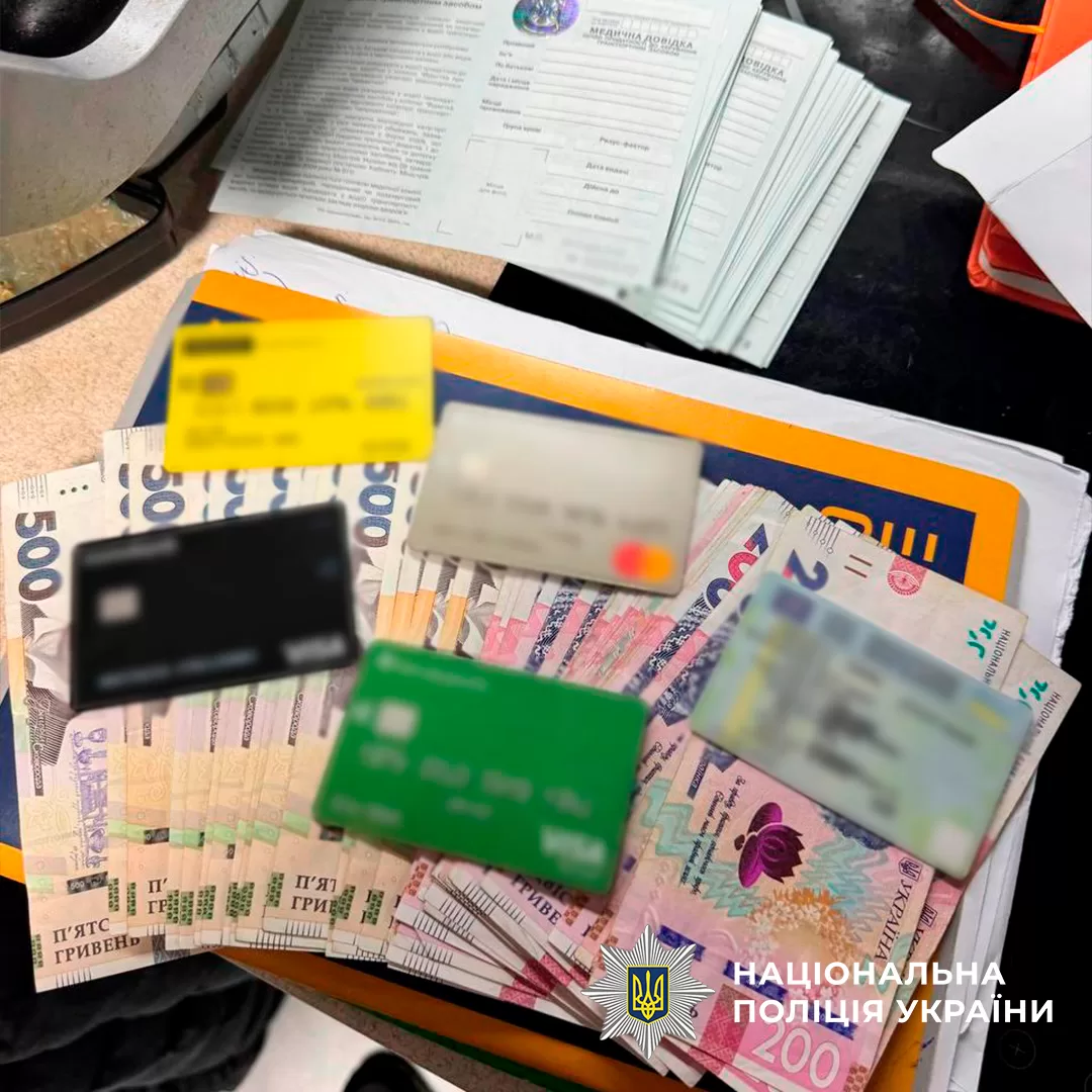 Під час обшуків за місцем проживання та роботи фігурантки поліцейські вилучили документацію, медичні довідки, печатки, гроші та чорнові записи.