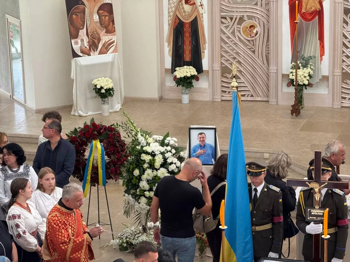 Церемонія прощання проходить у храмі Святої Софії-Премудрості Божої на території УКУ. Попрощатися із Ярославом Рущишиним прийшли рідні, друзі, однопартійці та містяни.