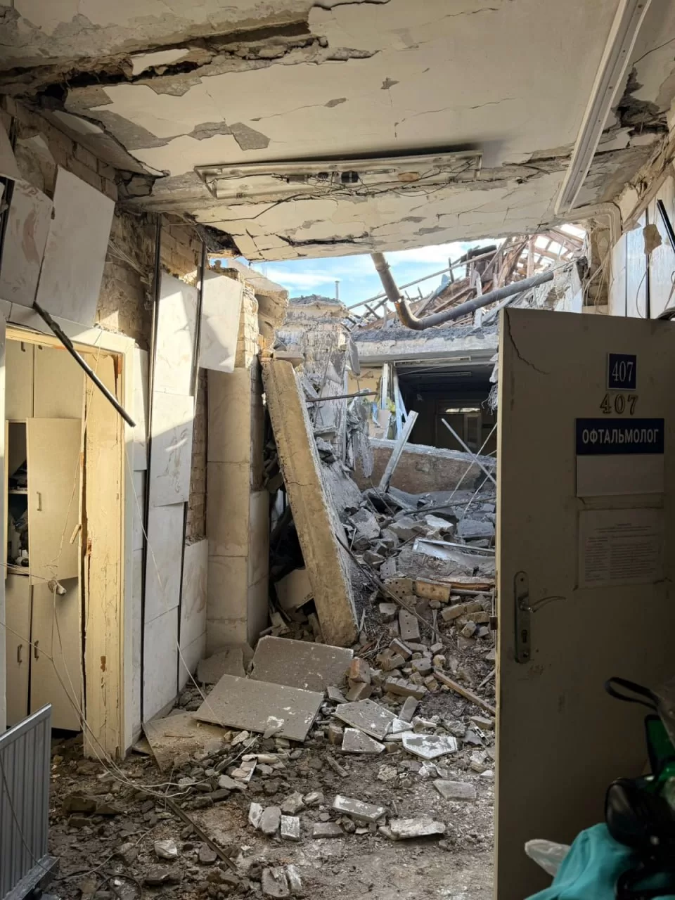 “Зараз там ведуться роботи з демонтажу вікон і скла, а близько 90 пацієнтів, що лікувалися в пошкоджених нині будівлях, перевели в інші вцілілі корпуси”, — розповіли в МОЗ.