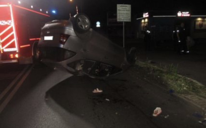 За словами польських правоохоронців, 36-річна громадянка України за кермом Mercedes Benz їхала центром міста. На ділянці з рухом по колу вона проігнорувала правила дорожнього руху й поїхала прямо. Машина влетіла в острівець безпеки, знесла кілька дорожніх знаків, а далі перекинулася на дах.