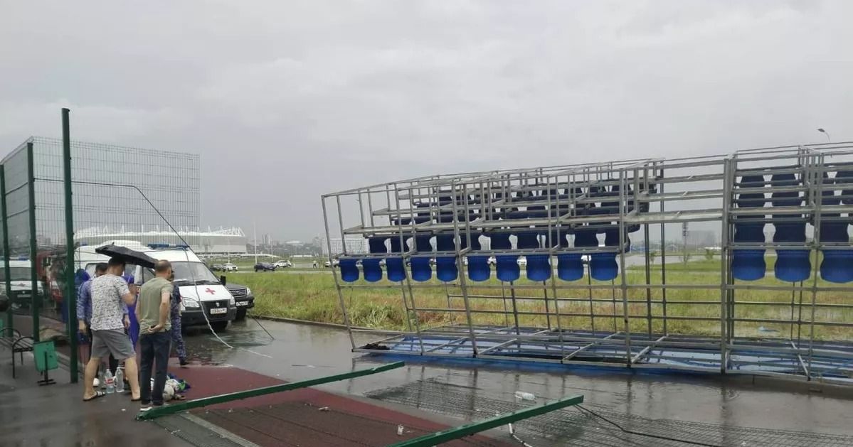 Інцидент стався під час футбольного матчу — збірні конструкції трибуни глядачів перевернуло поривом шквалистого вітру.