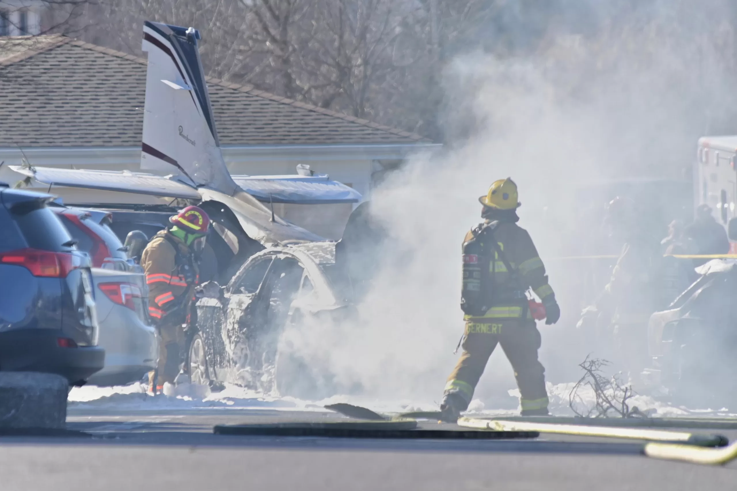 На місце прибула пожежна машина з аеропорту. Федеральне управління цивільної авіації підтвердило, що на борту Beechcraft Bonanza було п’ятеро людей.