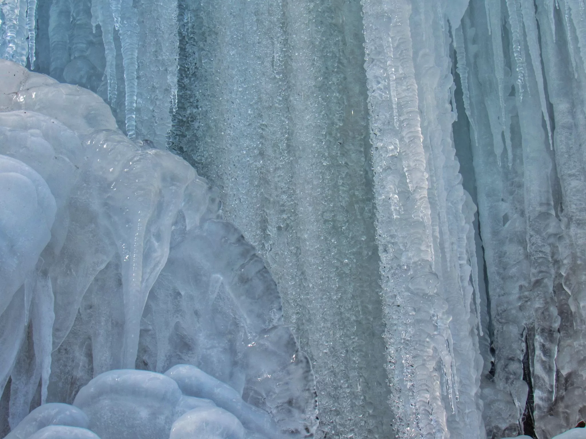 На відео помітно, як вода стікає тонким струменем, поступово замерзаючи у вигляді бурульок і крижаних брил.