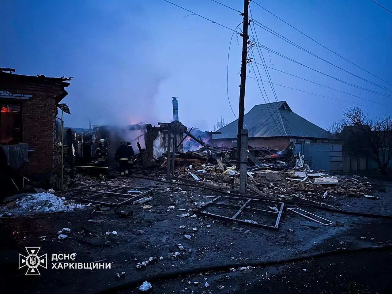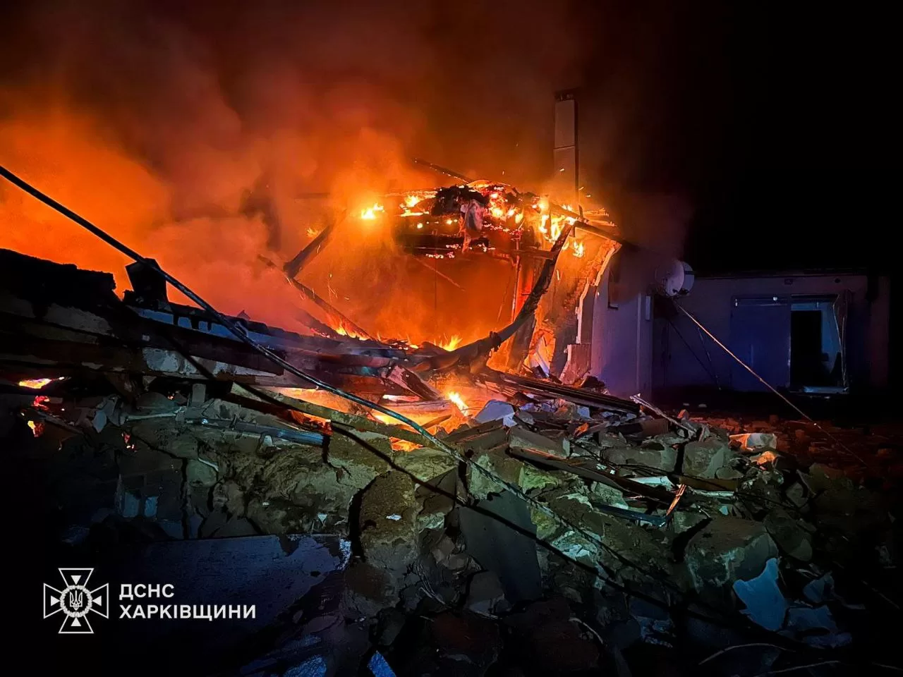 Про це повідомили ДСНС України та Харківська обласна прокуратура. За їхніми даними, у селищі Золочів Богодухівського району внаслідок удару БпЛА, попередньо типу «Герань-2», виникла пожежа в житловому секторі.