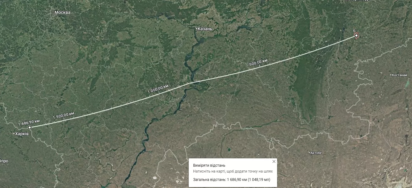 Водночас фактична дальність польоту могла бути більшою, оскільки розрахунок відстані від державного кордону України не враховує реальні точки запуску.