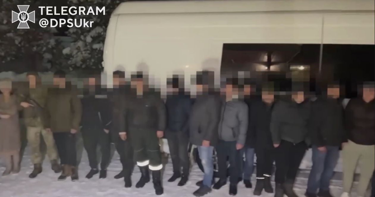 У Чернівецькій області прикордонники зупинили два мікроавтобуси, що прямували у бік Румунії. 13 пасажирів, віком від 22 до 52 років, планували пішки перетнути кордон на одній з гірських ділянок Карпат.