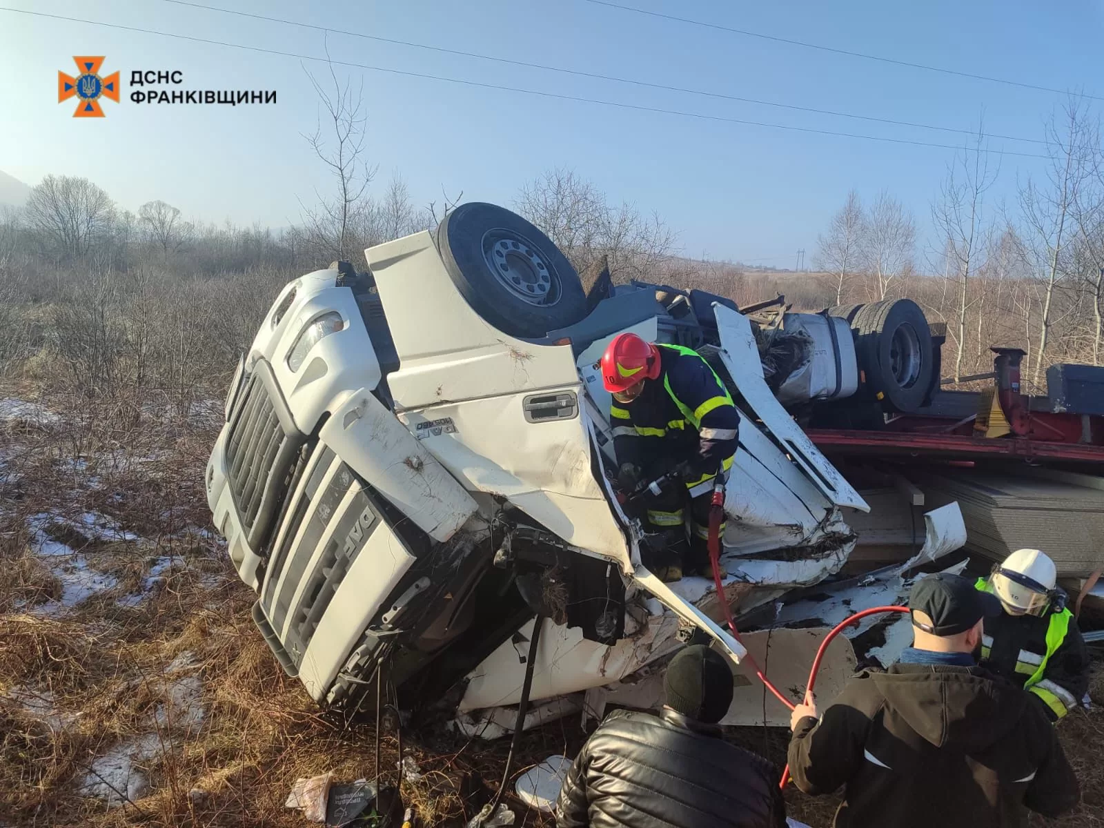 В Івано-Франківській області з траси вилетіла фура: водія діставали рятувальники