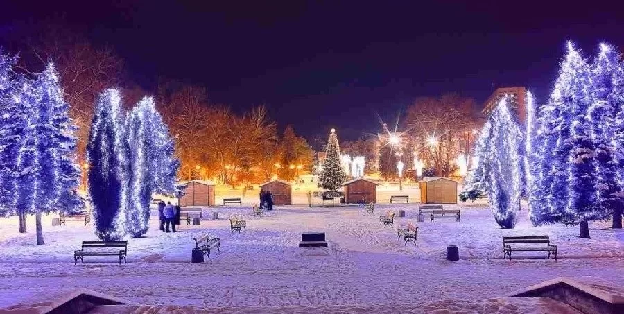 Тут немає одноманітності — кожен комплекс створює власний новорічний стиль. Святкування в Трускавці зазвичай включає: