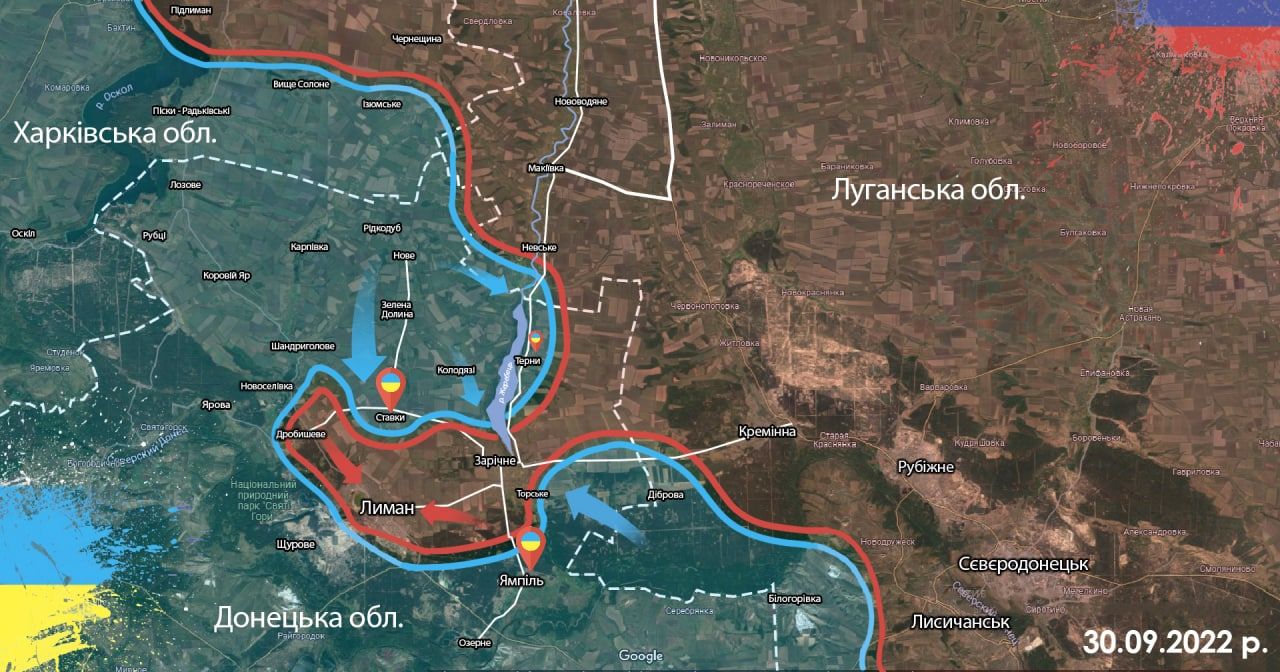 Російські “воєнкори” повідомляють, що Ставки та Ямпіль вже зайняті ВСУ, а наші передові штурмові підрозділи форсували річку Жеребець і зайшли в Терни, перерізаючи дорогу на Сватове.