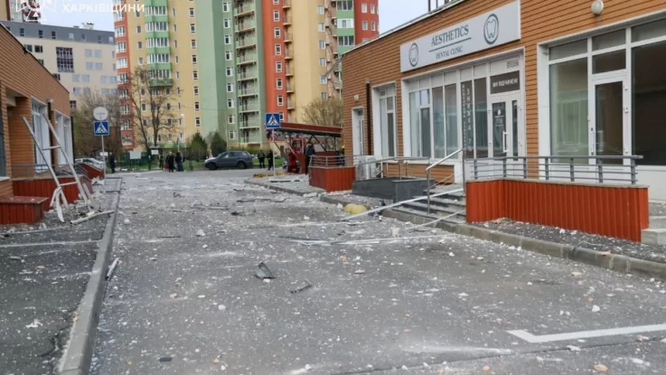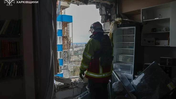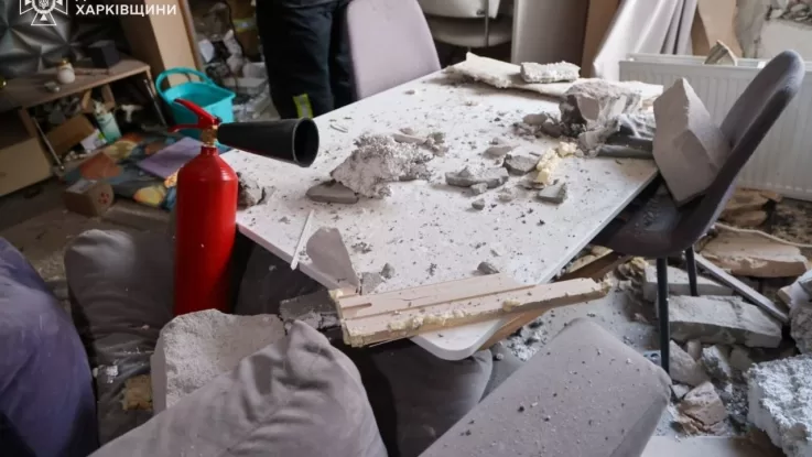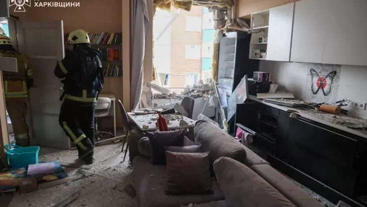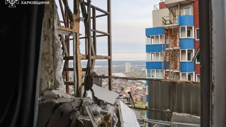 Зʼявились фото наслідків влучання ворожого БПЛА по багатоповерхівці у Харкові